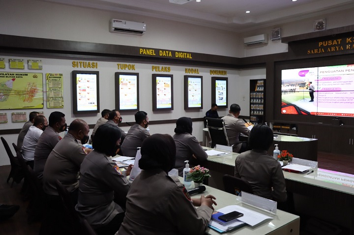 SURABAYAPAGI.COM, Blitar - Kapolres Blitar Kota AKBP Dr Yudhi Hery Setyawan S.IK M.Si pimpin langsung kegiatan zoom meeting desk evaluasi WBK menuju WBBM dari Menpan RB, Kamis (2/12) pagi.
