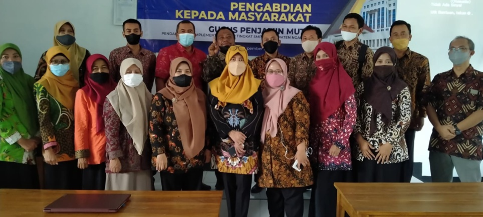 Kegiatan ini dilaksanakan pada 2 Oktober 2021 secara luring, dilanjutkan dengan pendampingan secara daring hingga November, melibatkan 15 SMPN di Kabupaten Nganjuk dan 15 guru sebagai peserta untuk mewakili setiap sekolah.