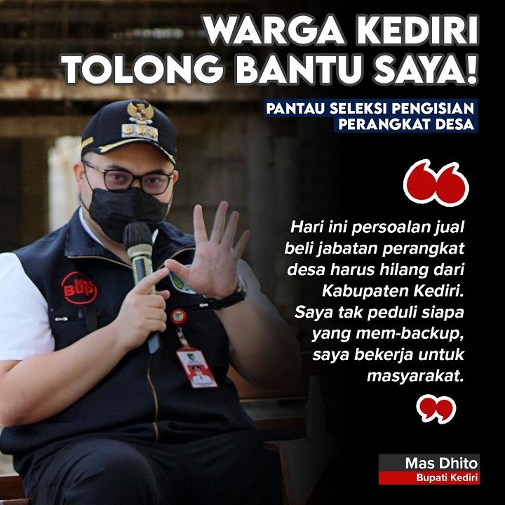 'Warga Kediri tolong bantu saya, pantau seleksi pengisian perangkat desa. Kalau ada kecurangan tolong dilaporkan," tuturnya.