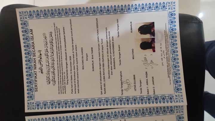Mendapati informasi tersebut, lanjut Umam, pihaknya langsung melakukan order secara COD. Pelaku pembuat surat akta nikah tersebut langsung membuatkan suratnya dengan akad berbayar sesuai permintaan.