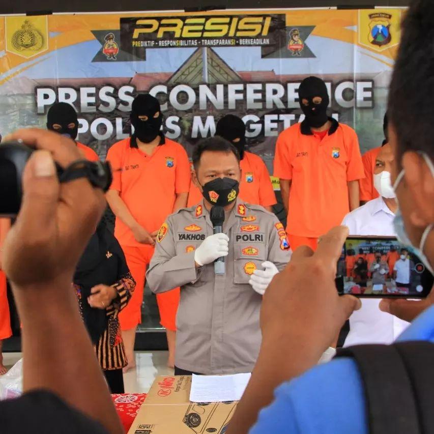 Kapolres Magetan AKBP Yakhob Silvana Delareskha menjelaskan para tersangka diamankan karena membawa kabur perhiasan milik korbannya di Kota Magetan.