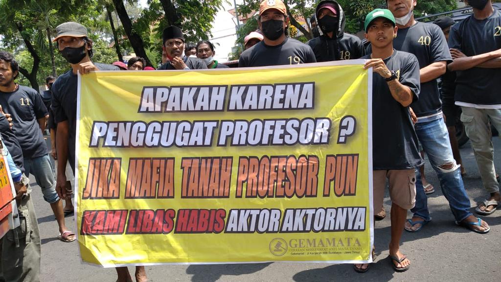 GEMAMATA (Gerakan Masyarakat Anti Mafia Tanah) menggelar aksi di Pengadilan Negeri Surabaya, Selasa (14/12/2021).SP/BD