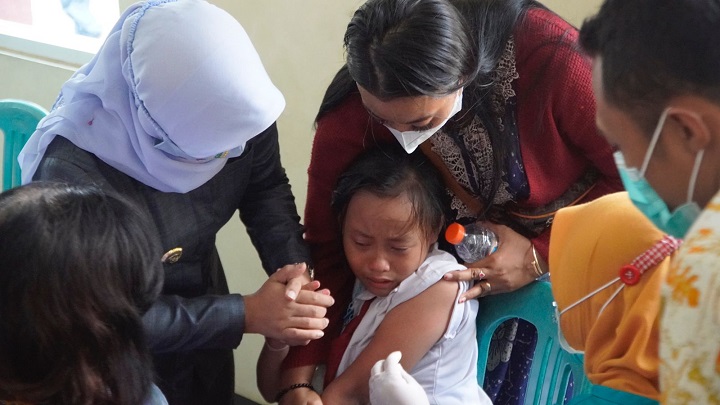 "Total sasarannya sebanyak 11.079 anak. Yakni, hanya kelas III sampai kelas VI saja diusia 9 sampai 12 tahun. Karena siswa kelas I dan II baru saja mendapatkan vaksinasi campak. Sehingga akan dilakukan vaksinasi Covid-19 pada tahun depan," terang Ning Ita usai meninjau pelaksanaan vaksinasi anak di SDN Balongsari, Kecamatan Magersari.