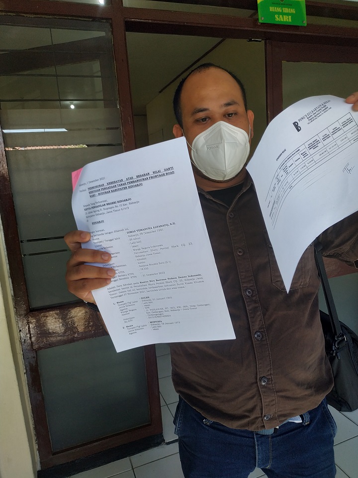 SURABAYAPAGI.COM, Sidoarjo - Langkah Pemkab Sidoarjo membebaskan lahan di jalur Gedangan untuk frontage road terpaksa tertunda. Pasalnya enam warga pemilik lahan memilih mengajukan gugatan ke PN Sidoarjo karena tak terima dengan ganti rugi yang dinilai kecil.