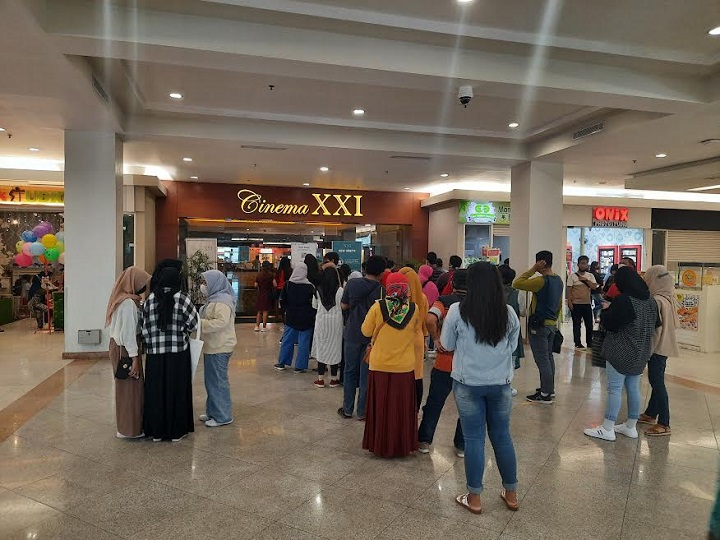 Ini juga terlihat saat di depan Studio Cinema XXI,banyak pengunjung yang rela mengantri panjang untuk bisa masuk.