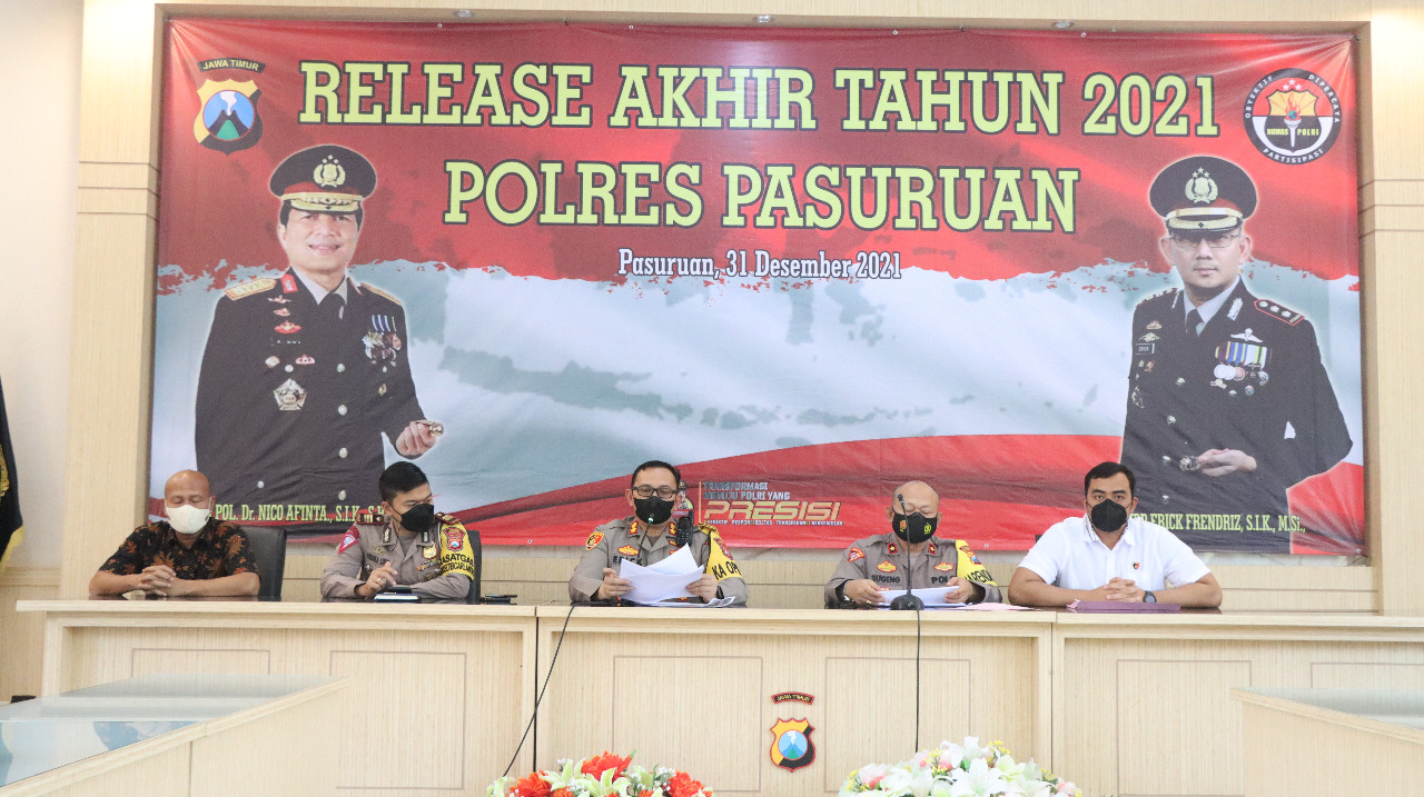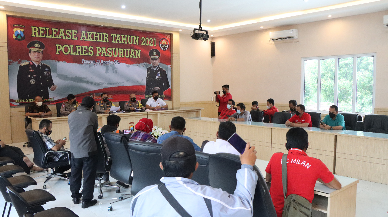SURABAYAPAGI.COM, Pasuruan - Kepolisian Resor Pasuruan menggelar Press Release Akhir tahun di ruang Rupatama Polres Pasuruan, Jumat (31/12/2021) pukul 10.00 WIB.