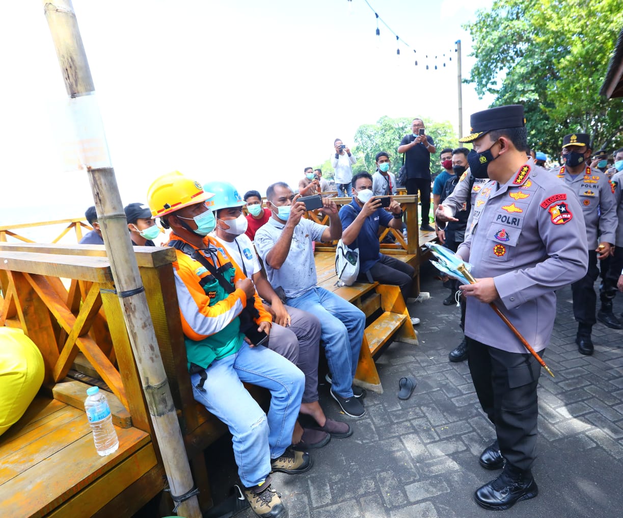 Selain meninjau vaksinasi massal, Sigit juga mengecek kepastian penerapan standar protokol kesehatan di Pantai Sulamadaha yang merupakan objek wisata di Maluku Utara.