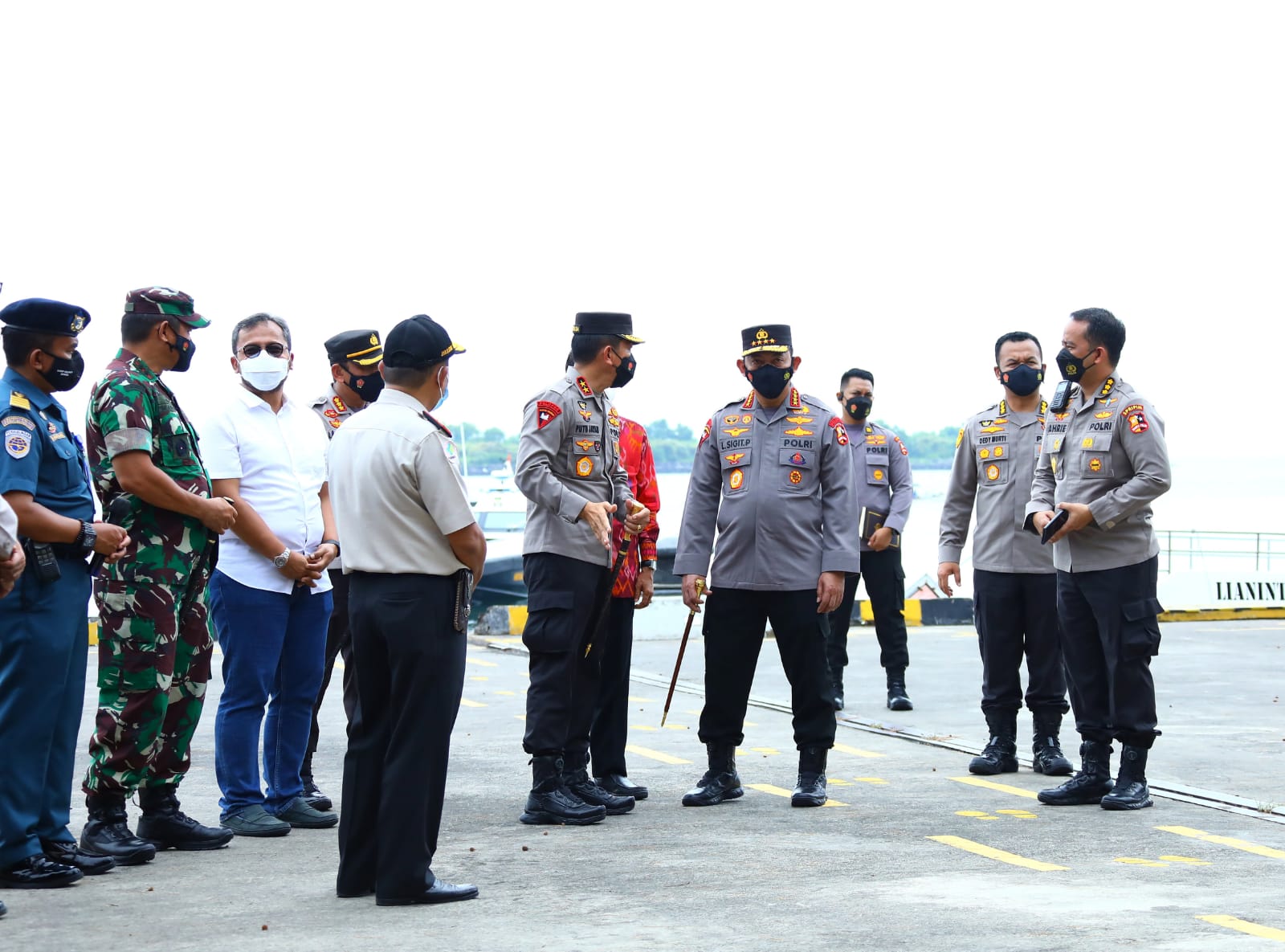 SURABAYAPAGI.COM, Bali - Kapolri Jenderal Listyo Sigit Prabowo meninjau langsung Pelabuhan Benoa, Bali untuk memastikan proses penegakan protokol kesehatan (prokes) hingga pelaksanaan masa karantina, bagi Pelaku Perjalanan Luar Negeri (PPLN) yang masuk ke Indonesia, untuk mencegah penyebaran virus Covid-19 varian Omicron.