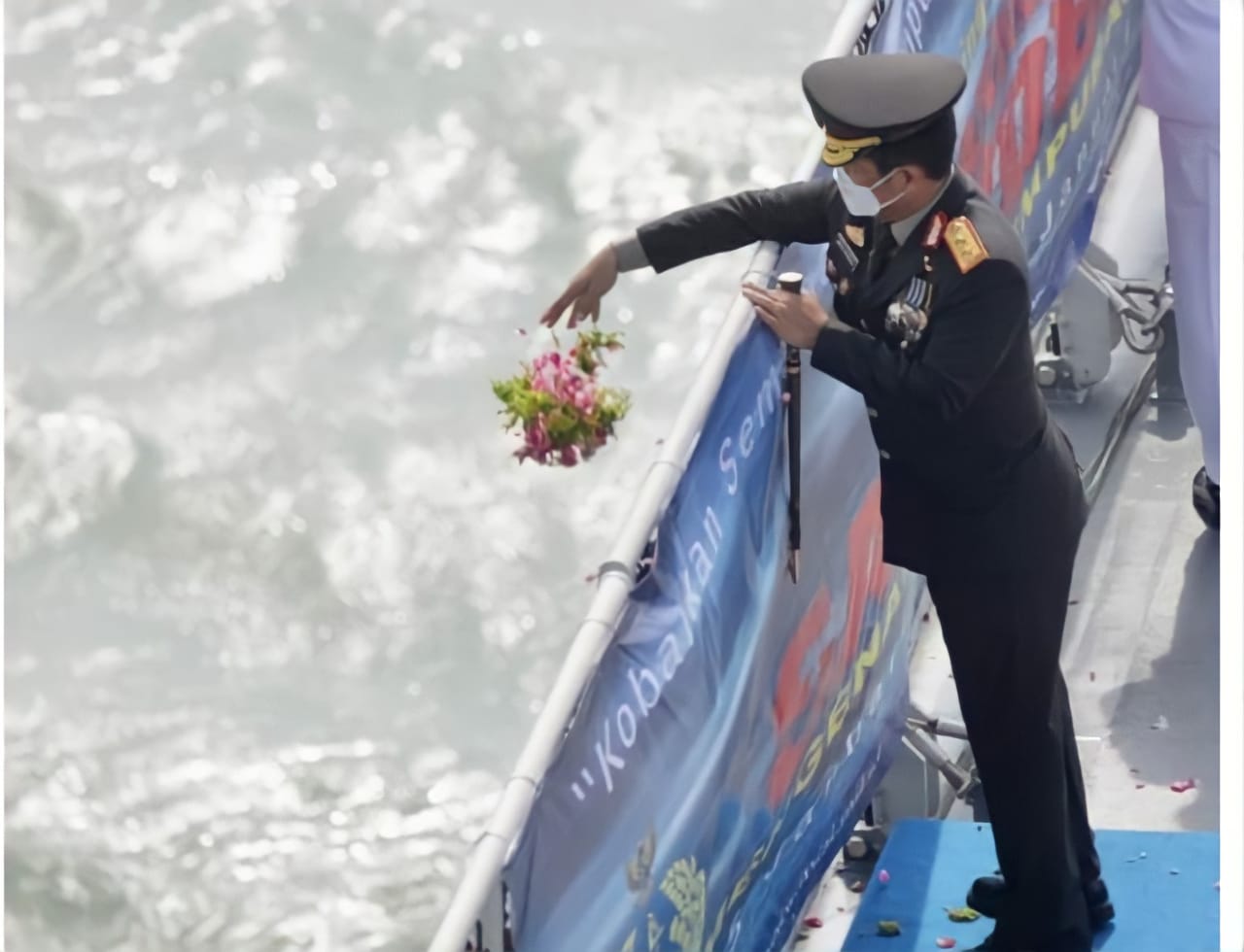 Upacara yang dilaksanakan di Selat Madura ditandai dengan pelarungan karangan bunga oleh KASAL, Gubernur Jatim Khofifah Indar Parawansa, Pangdam V/Brawijaya Mayjen TNI Nurchahyanto, Kapolda Jatim Irjen Pol Nico Afinta dan pejabat lainnya.