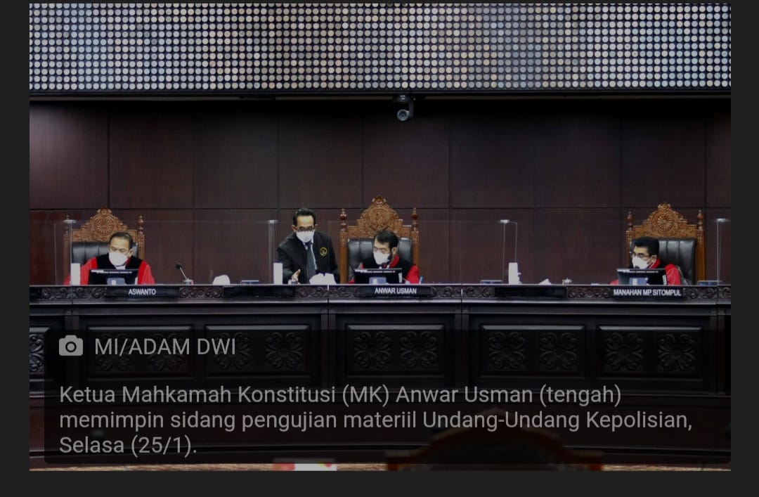 SURABAYAPAGI.COM, Jakarta - Permohonan pengujian Undang-Undang Nomor 2 Tahun 2002 tentang Kepolisian Republik Indonesia (UU Polri) yang diajukan oleh Leonardo Siahaan dan Fransiscus Arian Sinaga ditolak oleh Mahkamah Konstitusi (MK).