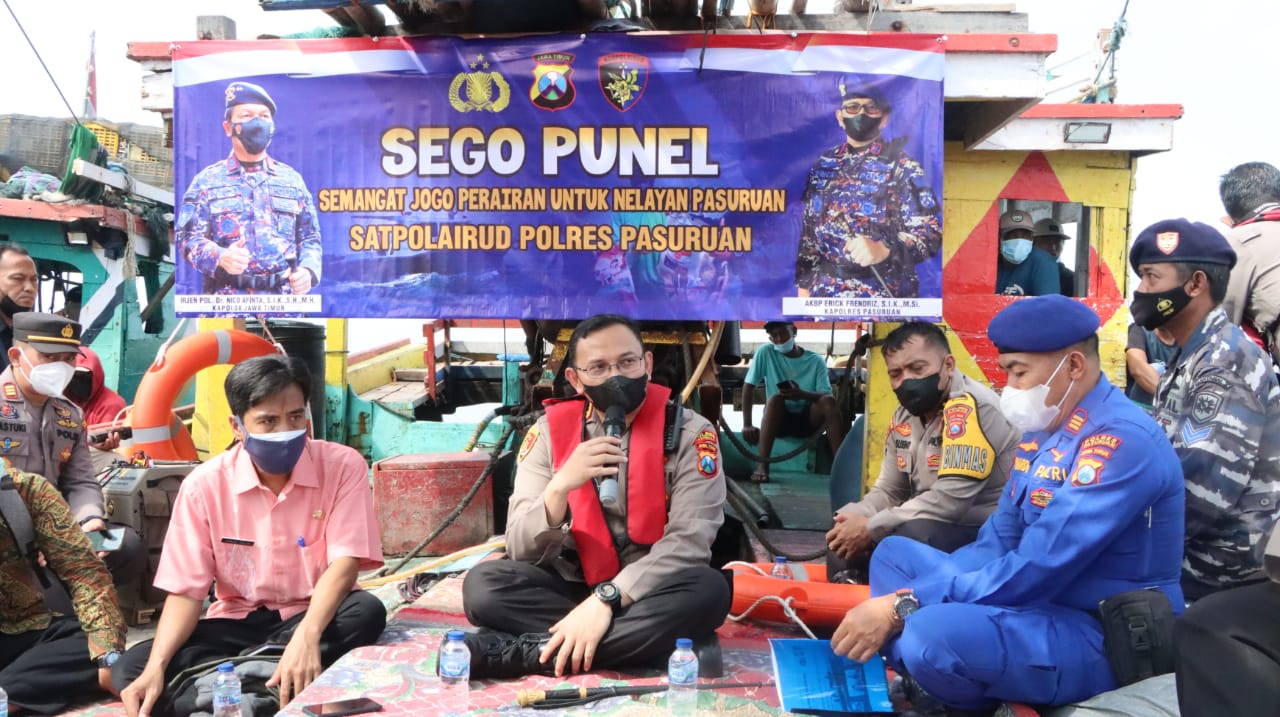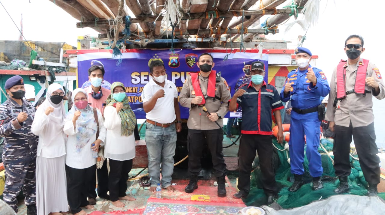Kegiatan bertempat di Perairan Pasuruan diatas KMN JAYA SAMUDRA dengan Tema "Sego Punel (Semangat Jogo Perairan untuk Nelayan Pasuruan)", kegiatan tersebut dihadiri oleh 25 orang, Jum'at (28/01/2022).