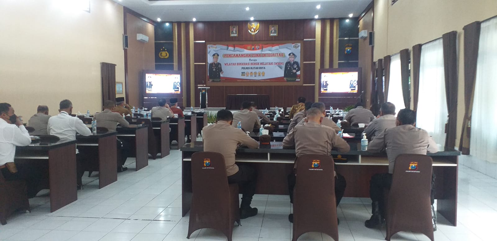 SURABAYAPAGI.COM, Blitar - Polres Blitar Kota gelar pelaksanaan Zona Integritas menuju Wilayah Birokrasi Bersih Melayani (WBBM) pada Senin (31/1) di gedung Rupatama Polres Blitar Kota.