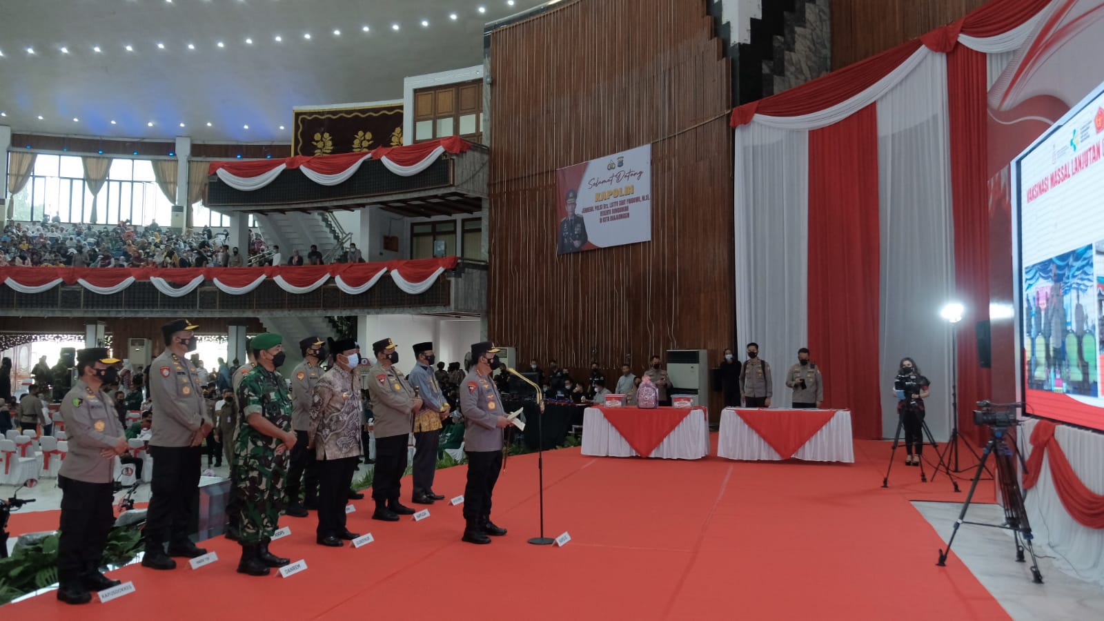 "Tentunya dalam kesempatan ini saya ucapkan terima kasih, apresiasi atas kerja keras kerja sama dari TNI-Polri dan seluruh Pemda baik Provinsi, kotamadya maupun kabupaten yang terus bekerja sama membantu percepatan program akselerasi vaksinasi nasional," kata Sigit.