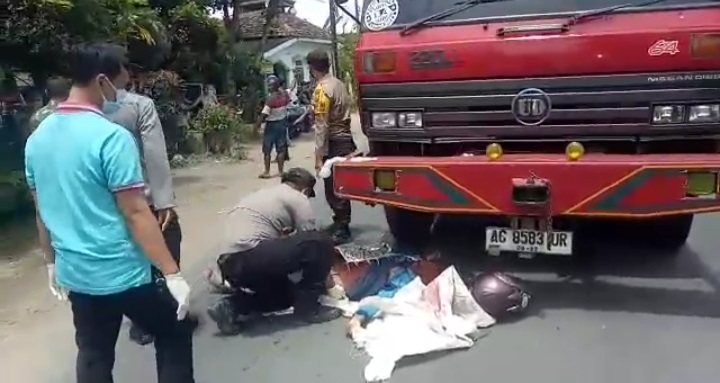 Menurut saksi saksi di dua TKP dan sesuai laporan polisi, kejadian kedua korban wanita yang belum diketahui identitasnya, berjalan dari arah barat menuju ke timur menyalip truk yang ada di depannya, sementara korban membawa dua kemasan obrok di samping kanan kiri motornya, saat menyalip truk, obrok sebelah kiri senggol truk, korban dan motornya jatuh di depan truk yang jalan searah.