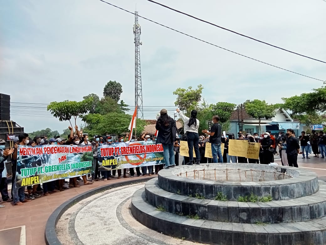 Perlu diketahui ratusan massa datang menumpang 4 truk dan puluhan motor, mereka langsung membentangkan spanduk dan poster berisi tuntutan mereka. Diantaranya tutup PT Greenfields Indonesia 2, Petani Rugi Karena Limbah dan Kami Tidak Butuh Pabrik Susu Tapi Butuh Lingkungan Sehat.