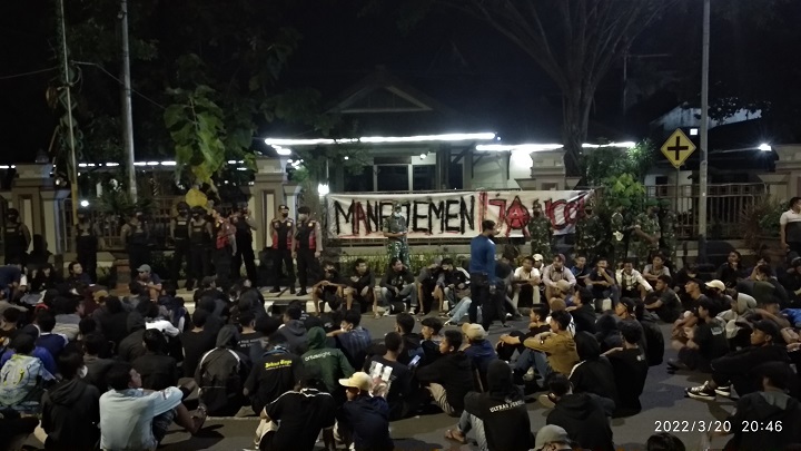 Karuan saja, usai merusak sejumlah fasilitas kantor Sekretariat Persela. Ratusan suporter ini melanjutkan aksi nya di depan Pendopo Bupati Lamongan.