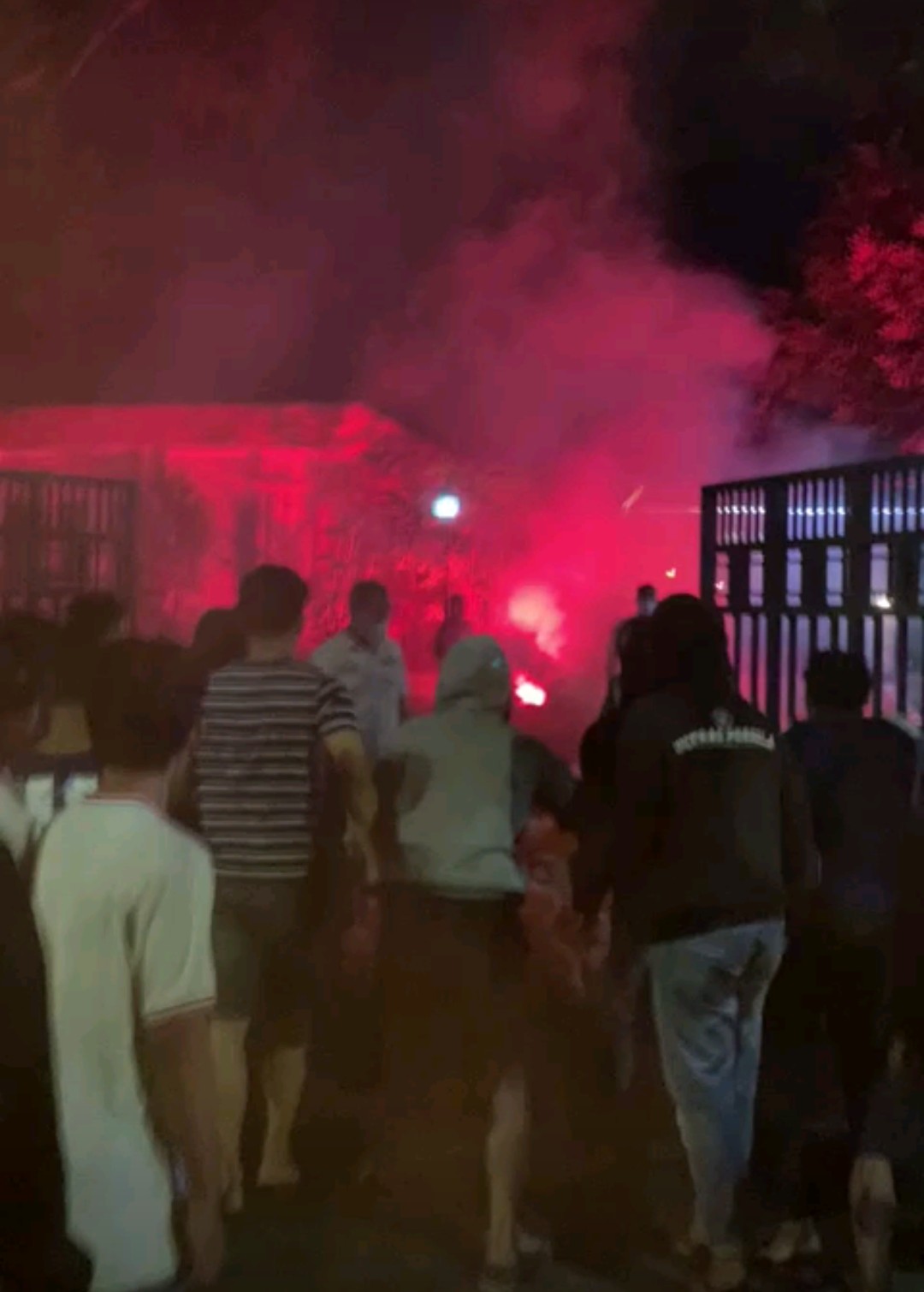 Informasi yang didapat menyebutkan, kelompok suporter La Mania yang datang dari berbagai wilayah di Lamongan ini, merusak kantor Sekretariat Persela dan melempar flare ke Pendopo Lokatantra dimana di belakang nya ada rumah Dinas Bupati Yuhronur Efendi yang dihuni bersama keluarganya.