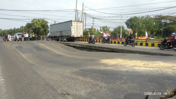 Sedangkan untuk arah sebaliknya dari Surabaya-Lamongan tambah Miko, kendaraan dialihkan ke jalan alternatif untuk melewati jalan Lamongan Kota, Sugio, Kedungpring dan Babat, atau jalan Daendels yang ada di wilayah Pantai Utara (Pantura). "Kendaraan dari arah timur Surabaya-Lamongan sudah kami alihkan ke jalur alternatif, untuk dari arah timur ke barat tetap bisa melewati dengan memanfaatkan sisa jembatan yang ada di bagian sisi kanan dan kiri, karena jembatan di tengahnya sudah ambles," terangnya.