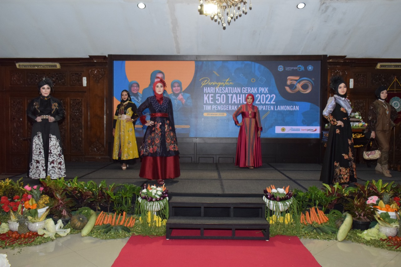 Tak hanya menggelar seminar kesehatan, peringatan setengah abad gerak PKK, TP PKK Lamongan juga menggelar Fashion Show batik khas Lamongan yang dihadiri langsung Bupati Lamongan, Yuhronur Efendi.