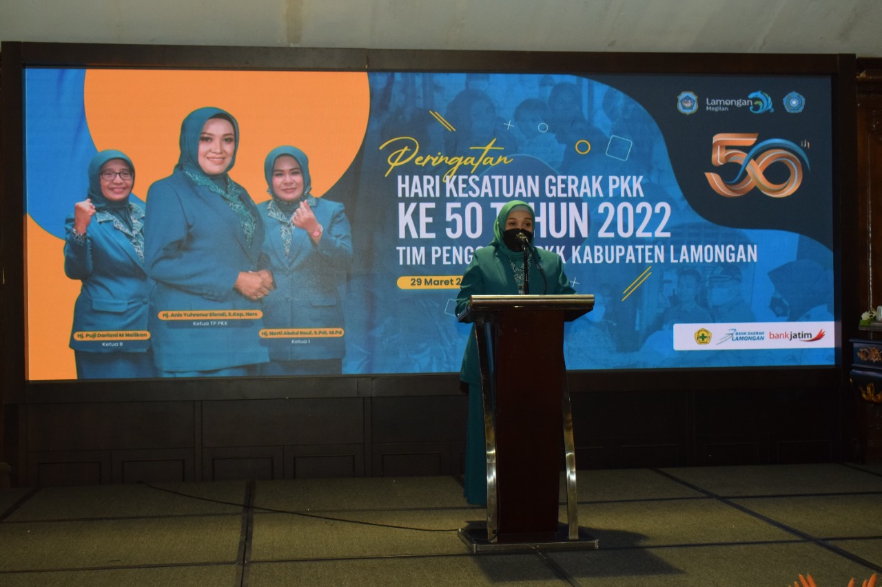 SURABAYA PAGI, Lamongan - Bertepatan umur setengah abad PKK Lamongan telah berbakti pada bangsa dan berbakti kepada sesama, Tim Penggerak Pemberdayaan Kesejahteraan Keluarga (TP PKK) Kabupaten Lamongan kolaborasi bersama Dinkes Lamongan menggelar Seminar Kesehatan TBC (Tuberculosis) yang dapat diikuti seluruh masyarakat secara live streaming di Pendopo Lokatantra, Selasa (29/3/2022).