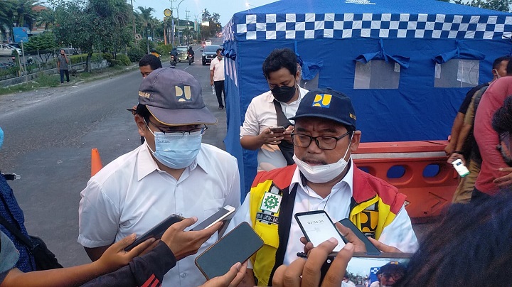 "Jadi yang ambles di bagian tengah, dengan lebar 8,75 meter. Untuk sisi kiri/Utara masih bisa dilewati hanya seukuran mobil pribadi, kalau yang selatan truk bisa asal pengendara harus hati-hati dan dapat ijin dari pihak Lalu Lintas," ungkapnya.