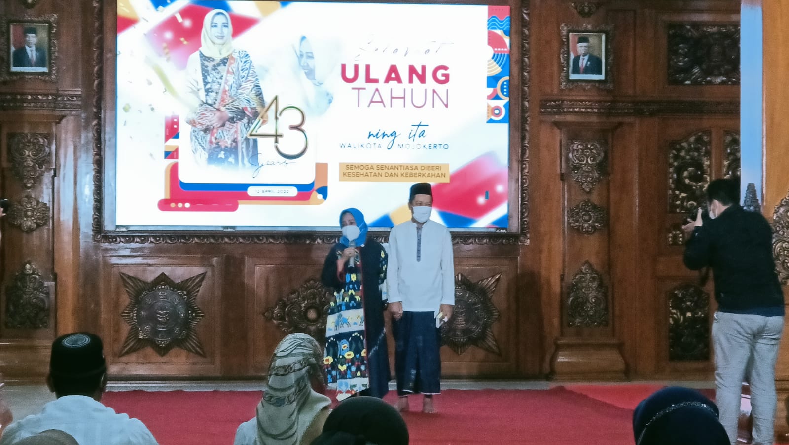 SURABAYAPAGI.COM, Mojokerto - Ramadhan hari kesepuluh menjadi hari spesial bagi Wali kota Mojokerto, Ika Puspitasari. Petinggi Pemkot Mojokerto ini merayakan syukuran hari kelahirannya yang ke- 43 di Pendopo Rumah Rakyat, Selasa malam (12/4/2022).