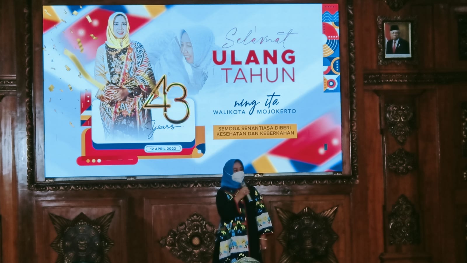 “Untuk Wali Kota Ning Ita, saya mengucapkan selamat ulang tahun yang ke 43, semoga selalu sehat dan tetap bisa berkarya sehingga Kota Mojokerto semakin maju dan terdepan. Kami bersama jajaran Pemkot Mojokerto, siap mendukung dalam membangun Kota Mojokerto ini, Ning Ita Ning Ati," kata Sekretaris Daerah Kota Mojokerto, Gaguk Tri Prasetya.