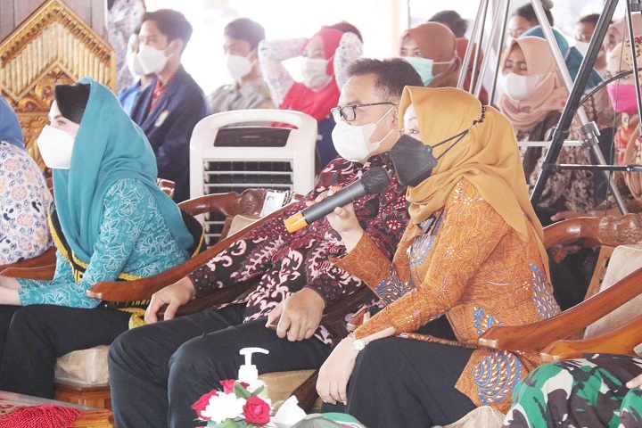 Setelah memberikan sambutan Bupati Mojokerto Ikfina Fahmawati memberikan cinderamata kepada kepala BKKBN Republik Indonesia sebagai kenang-kenangan dari pemerintah Kabupaten Mojokerto.