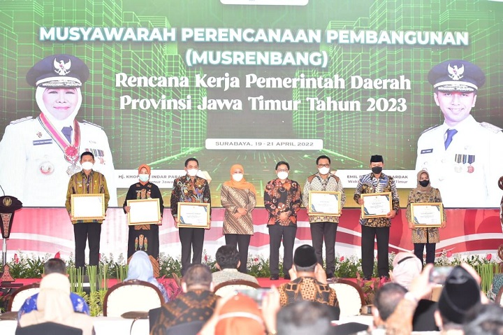 Dalam acara yang dihadiri seluruh kepala daerah se-Jatim tersebut, Gubernur Khofifah mengapresiasi atas partisipasi seluruh daerah yang telah menyampaikan perencanaan daerahnya.