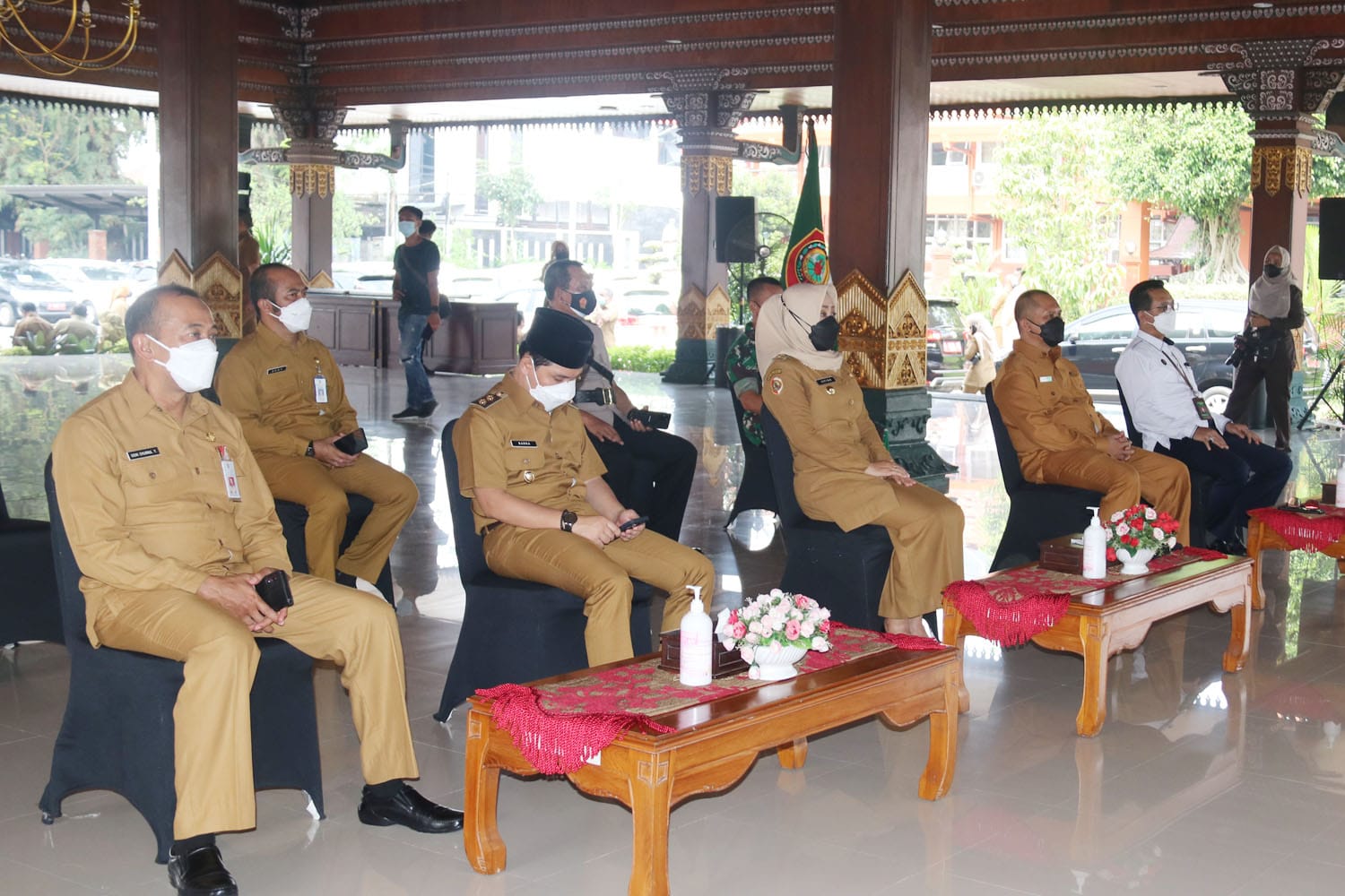 SURABAYAPAGI.COM, Mojokerto - Guna mendorong semangat Otonomi Daerah dalam mewujudkan Aparatur Sipil Negara (ASN) yang proaktif dan berakhlak, dengan membangun sinergi pusat dan daerah dalam rangka mewujudkan indonesia emas 2045. Bupati Mojokerto Ikfina Fahmawati didampingi oleh Wakil Bupati Mojokerto Muhammad Al-Barra menghadiri Peringatan Hari Otonomi Daerah (Otoda) ke XXVI tahun 2022 secara daring, di Pendopo Graha Maja Tama (GMT), Senin (25/4) pagi.
