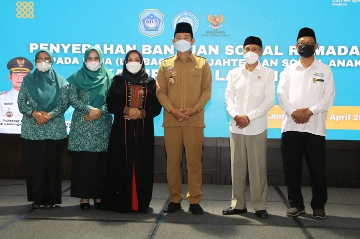 Bantuan berupa beras 50 Kg, gula 10 Kg, Mie Instan 2 kardus dan uang senilai 5 juta rupiah kepada masing-masing LKSA tersebut, diserahkan secara simbolis oleh Bupati Lamongan Yuhronur Efendi bersama Ketua TP PKK Lamongan Anis Yes dan Ketua Baznas Lamongan Bambang Eko Mulyono menyerahkan bantuan kepada pembina LKSA di Pendopo Lokatantra.