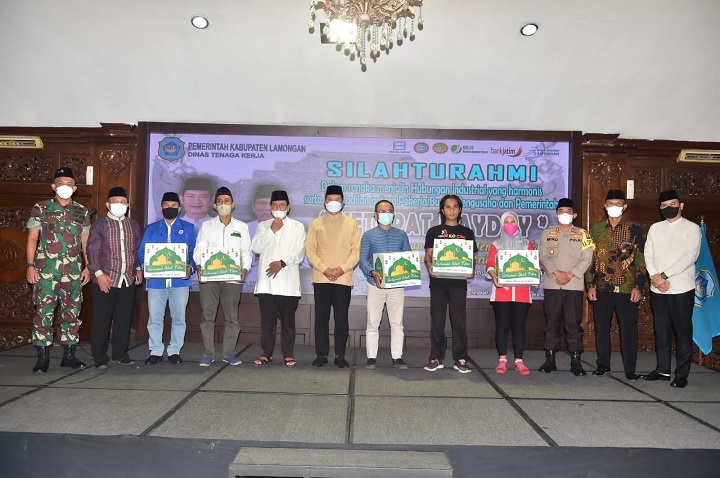 SURABAYAPAGI.COM, Lamongan - Berbeda dengan perayaan Mayday yang umumnya digelar melalui aksi demo, Lamongan menandai event Mayday melalui aksi damai dengan melaksanakan kegiatan silaturahmi antar pekerja, pengusaha, dan pemerintah di Pendopo Lokatantra Lamongan. Kegiatan ini dilaksanakan dalam rangka menjalin hubungan industrial yang harmonis antar tripartit (pekerja, pengusaha, dan pemerintah).