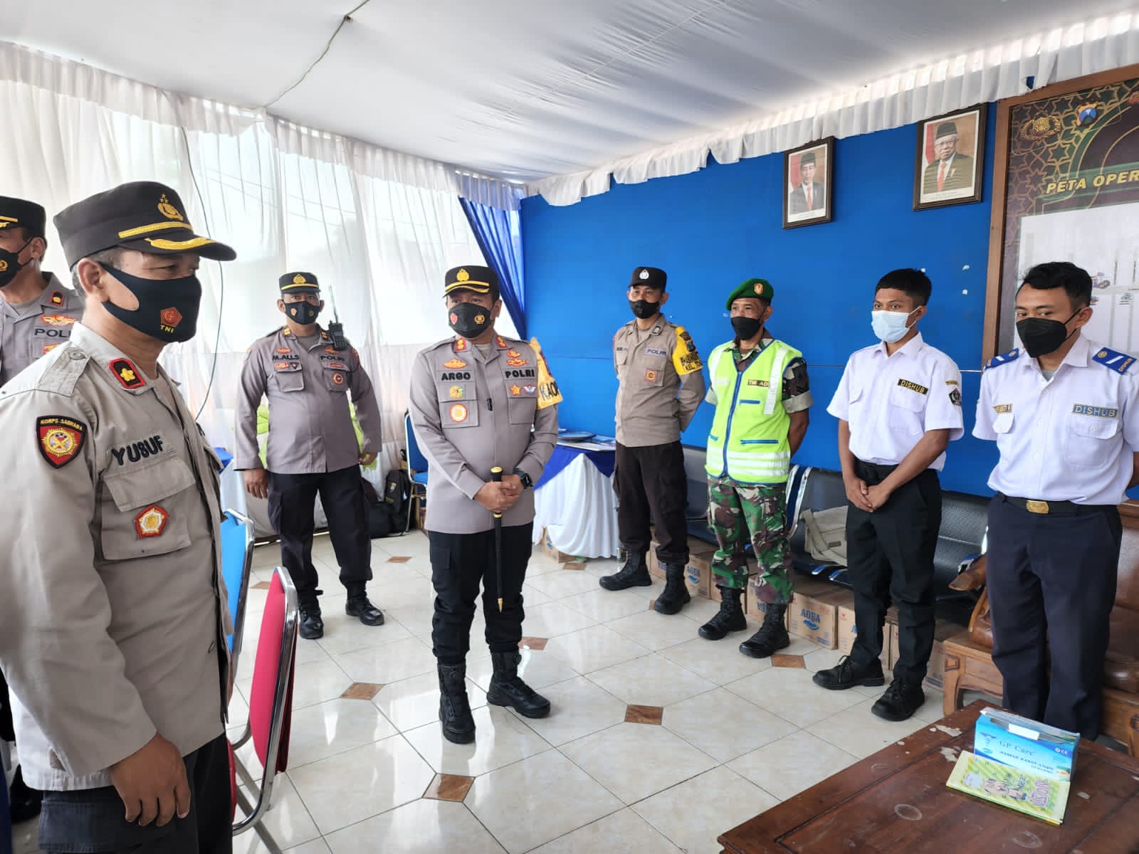 SURABAYAPAGI.COM, Blitar - Kapolres Blitar AKBP Argowiyono SH S.IK M.Si sambangi petugas Pos Pam dan Pos Yan Ops.ketupat Semeru 2022 bersama para PJU di sertai Ibu ibu pengurus Bhayangkari pada Kamis (28/4/2022).