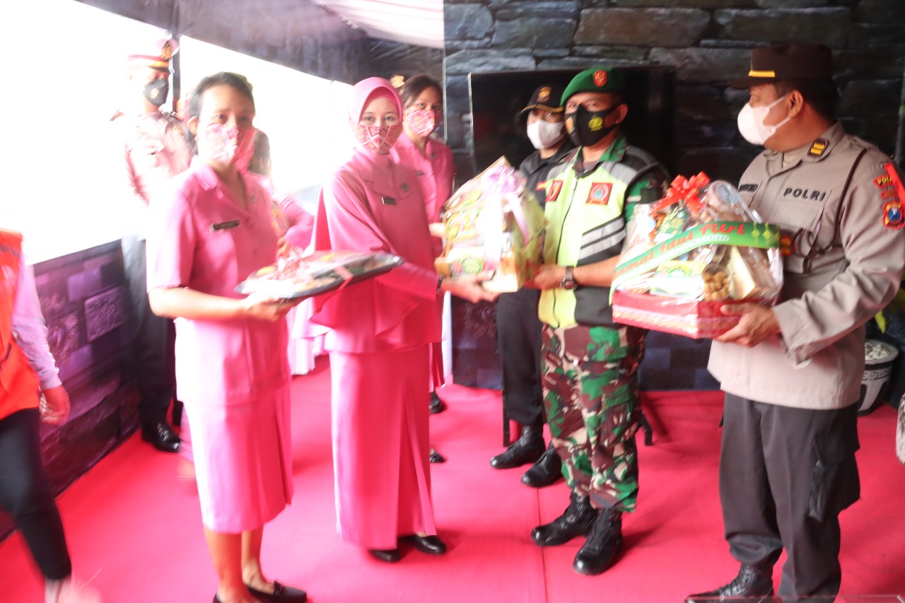 Saat mengakhiri kunjungannya Kapolres Blitar dan Ketua Bhayangkari Cabang Blitar memberikan tali asih bingkisan kepada pada petugas Pos Pam.