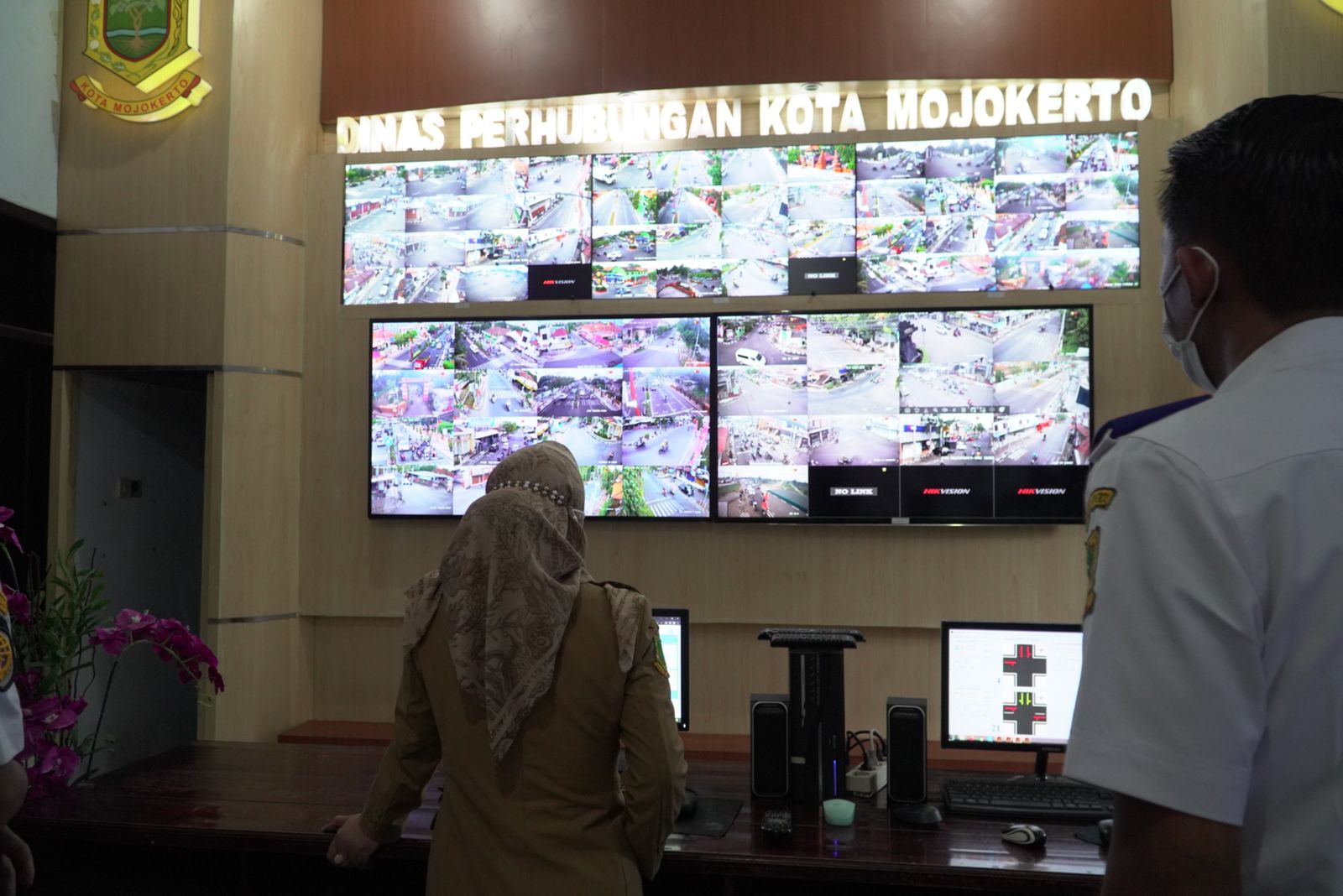 Salah satunya dengan memantau sejumlah titik ruas jalan di Kota Onde-Onde menggunakan 56 unit CCTV di sejumlah ruas jalan milik Pemkot Mojokerto.