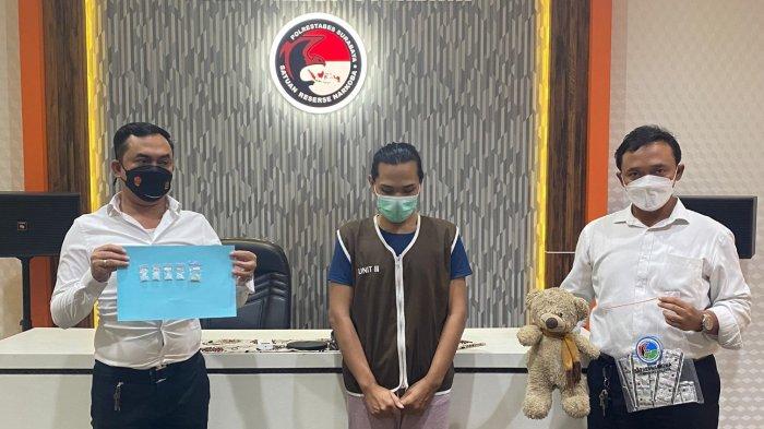 AS pria pengangguran ini menjual narkotika jenis sabu dengan menyembunyikan barang tersebut dimasukkan kedalam boneka beruang untuk mengelabui polisi.