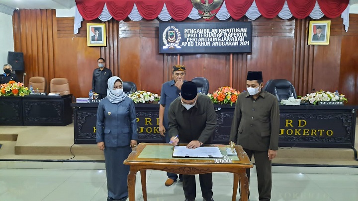 Penandatanganan persetujuan tersebut berlangsung dalam rapat paripurna yang dihadiri Walikota Ika Puspitasari, Sekdakot Gaguk Tri Prasetyo dan dipimpin langsung oleh Ketua DPRD Sunarto, didampingi Wakil Ketua Sony Basuki R dan Junaedi Malik. di lantai II Gedung DPRD Kota Mojokerto, Senin (30/5/2021).