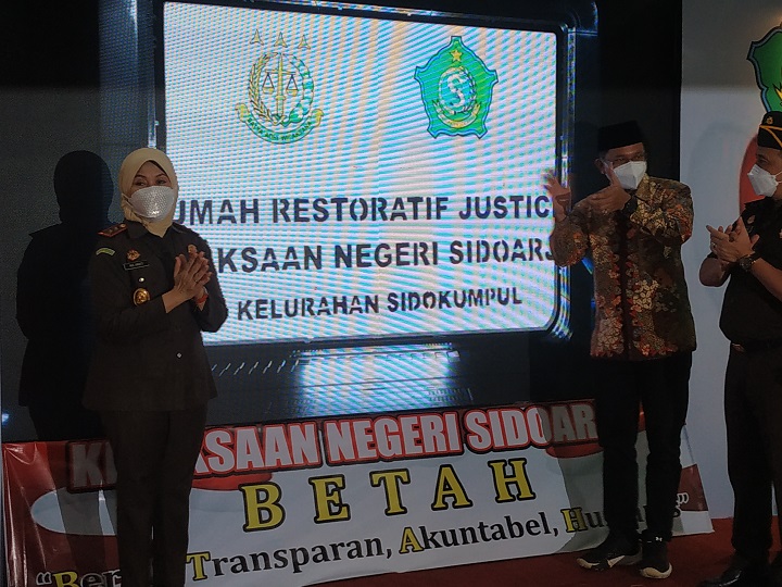 SURABAYAPAGI.COM, Sidoarjo - Kepala Kejaksaan Tinggi (Kajati) Jatim, Mia Amiati meresmikan berdirinya Rumah Restoratif Justice di Kantor Kelurahan Sidokumpul Kecamatan Kota Sidoarjo Kabupaten Sidoarjo, Senin (6/6/2022).