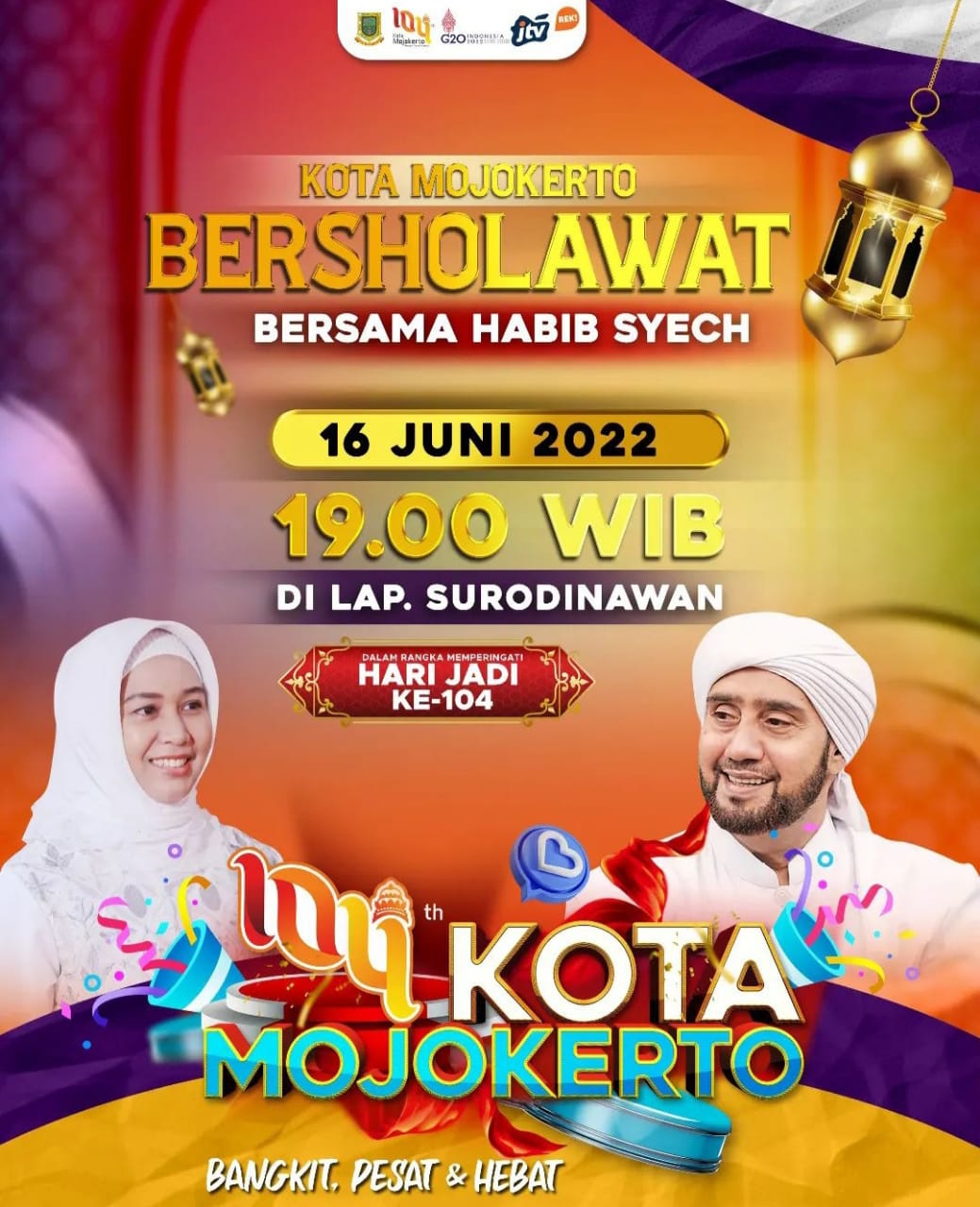 Kepala Bagian Kesra Setda Kota Mojokerto, Iwandoko menjelaskan dalam rangka Hari Jadi Kota Mojokerto ke-104, Pemerintah Kota Mojokerto menggelar 'Kota Mojokerto Bershalawat Bersama Habib Syech' pada hari Kamis (16/6/2022) malam.