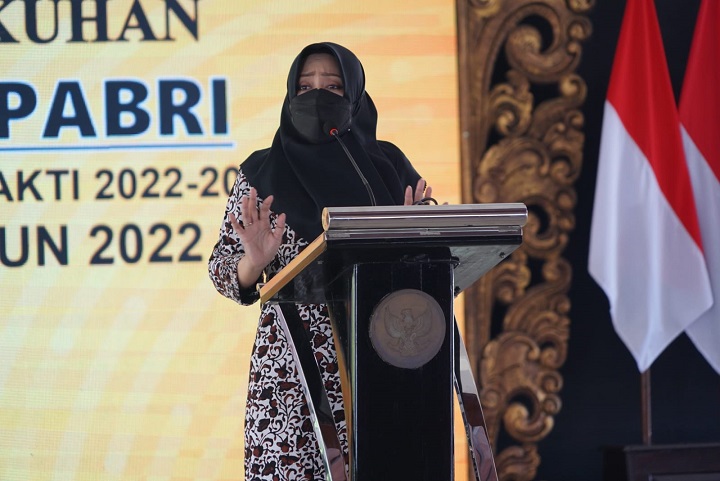 SURABAYAPAGI COM, Mojokerto - Bupati Mojokerto Ikfina Fahmawati menghadiri Pelantikan Pengurus Anak Cabang (PAC) Pepabri Kabupaten Mojokerto masa bakti tahun 2022 hingga 2025 dan HUT Perip ke-58, di pendopo Graha Maja Tama (GMT), Sabtu (11/6) pagi.