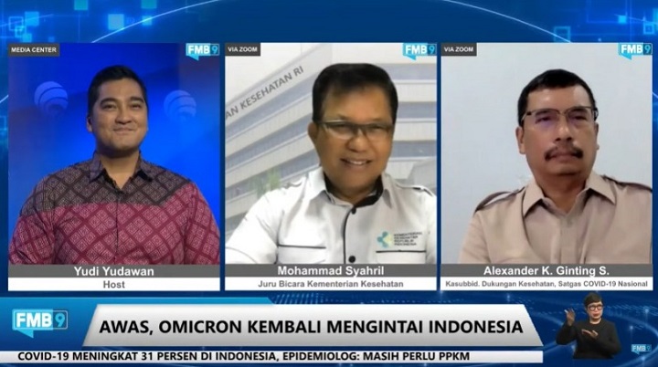 "Jadi memang benar bahwa setiap ada perubahaan varian, itu menyebabkan terjadi kenaikan kasus," ujar Alex dalam diskusi daring yang digelar Forum Merdeka Barat 9 bertema "Awas, Omicron Kembali Mengintai Indonesia" pada Kamis, (16/6/22).
