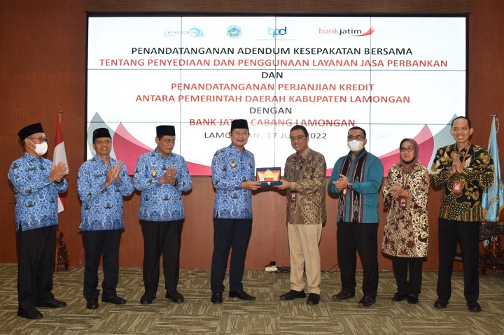 Segala upaya dan cara dalam mewujudkan infrastruktur jalan dan jembatan yang menjadi program super prioritas, Pemkab Lamongan menggandeng Bank Jatim. Komitmen itu diawali dengan penandatanganan kesepakatan bersama antara Pemkab Lamongan dan PT Bank Pembangunan Daerah Jawa Timur Tbk, Jum’at (17/6/2022) di Command Center Sekretariat Daerah Kabupaten Lamongan.