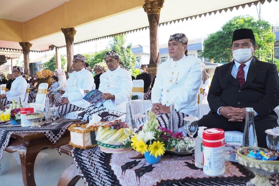 Lantunan Shalawat mengiringi langkah kaki Wali Kota Menuju ke lapangan upacara , nampak 104 pengayuh becak menyambut kedatangan wali kota Madiun dengan berjejer rapi.