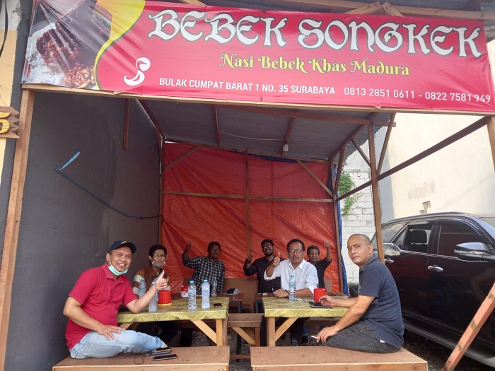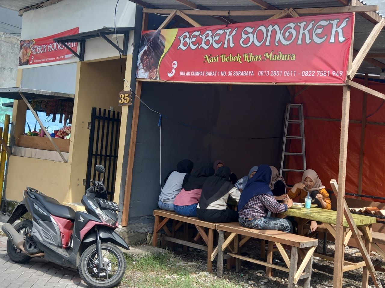 Berbagai kalangan tumpah ruah di warung bebek songkek yang berada di Jl. Bulak Cumpat Barat 1 No. 35 ini, mulai Wakil Ketua DPRD Surabaya AH. Thony hingga Direktur Forum Pemerhati Kebijakan Publik Pemerintah Vinsensius Awey juga menimbrung di warung Bebek Songkek.