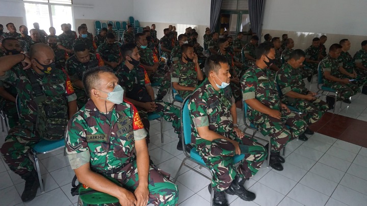 SURABAYAPAGI.COM, Pasuruan - Bekerjasama dengan Dinas Kesehatan Kabupaten dan Dinas Peternakan dan Kesehatan Hewan Kabupaten Pasuruan Kodim 0819 menyelenggarakan kegiatan sosialisasi Stunting terhadap anak dan penanganan Penyakit Mulut dan Kuku (PMK) pada hewan ternak diikuti oleh seluruh Perwira Staf dan anggota Babinsa Koramil jajaran di Aula Makodim, Senin (4/7/22)