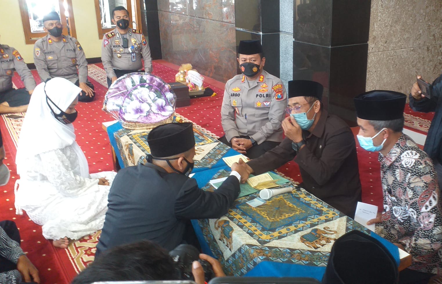 SURABAYAPAGI.COM, Blitar - Kapolres Blitar Kota AKBP Argowiyono SH S.IK M.Si mempunyai gawe menikahkan tahananya di Masjid Al-Aulia Polres Blitar Kota pada Jumat (8/7) pukul.09.00.