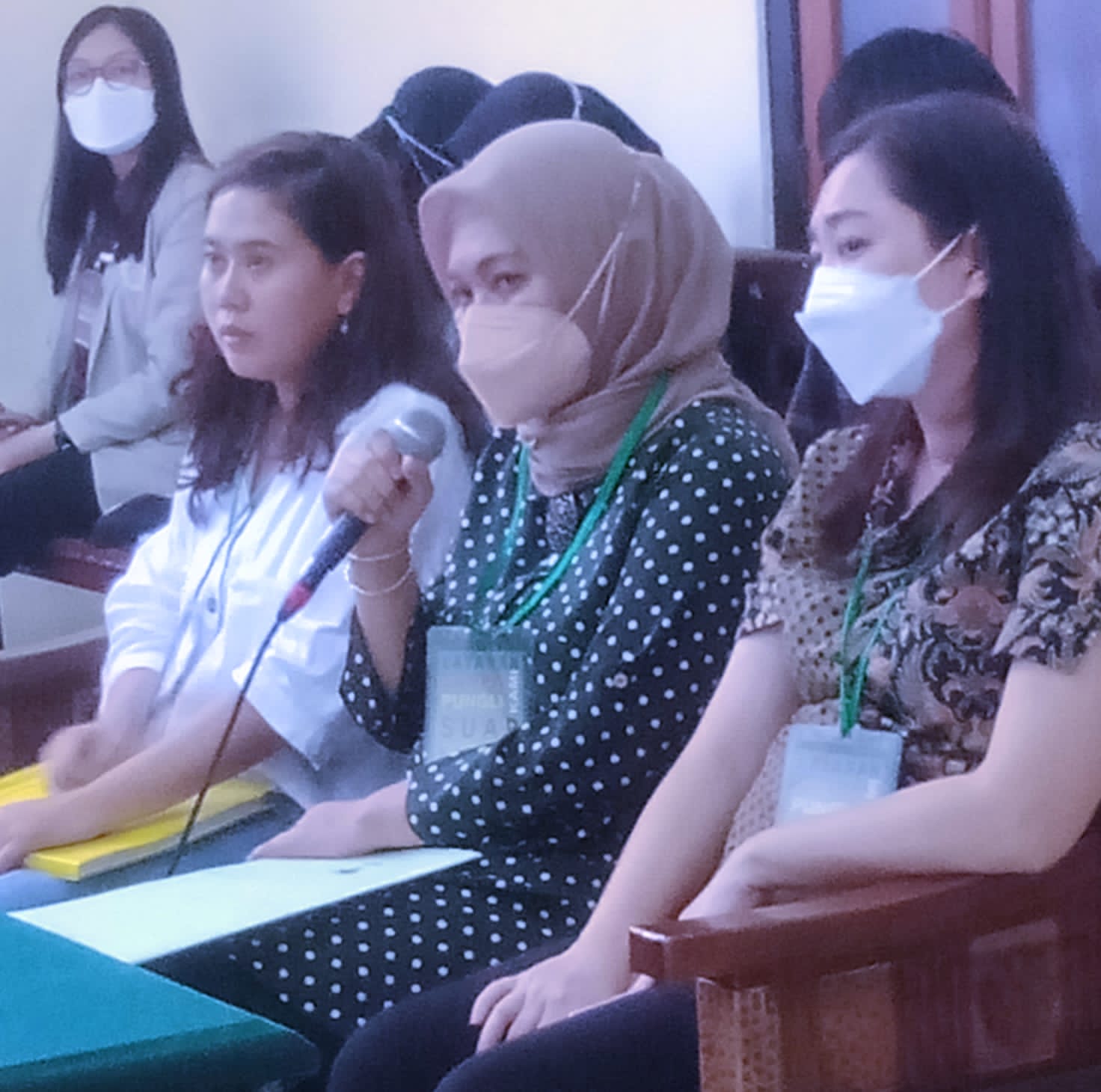 Saksi Maria Purnawati istri dari Erlanda ( korban penipuan), saksi Ariani Notaris (tengah) dan saksi Finny Yuliasari karyawan bank permata, memberikan keterangan dipersidangan.