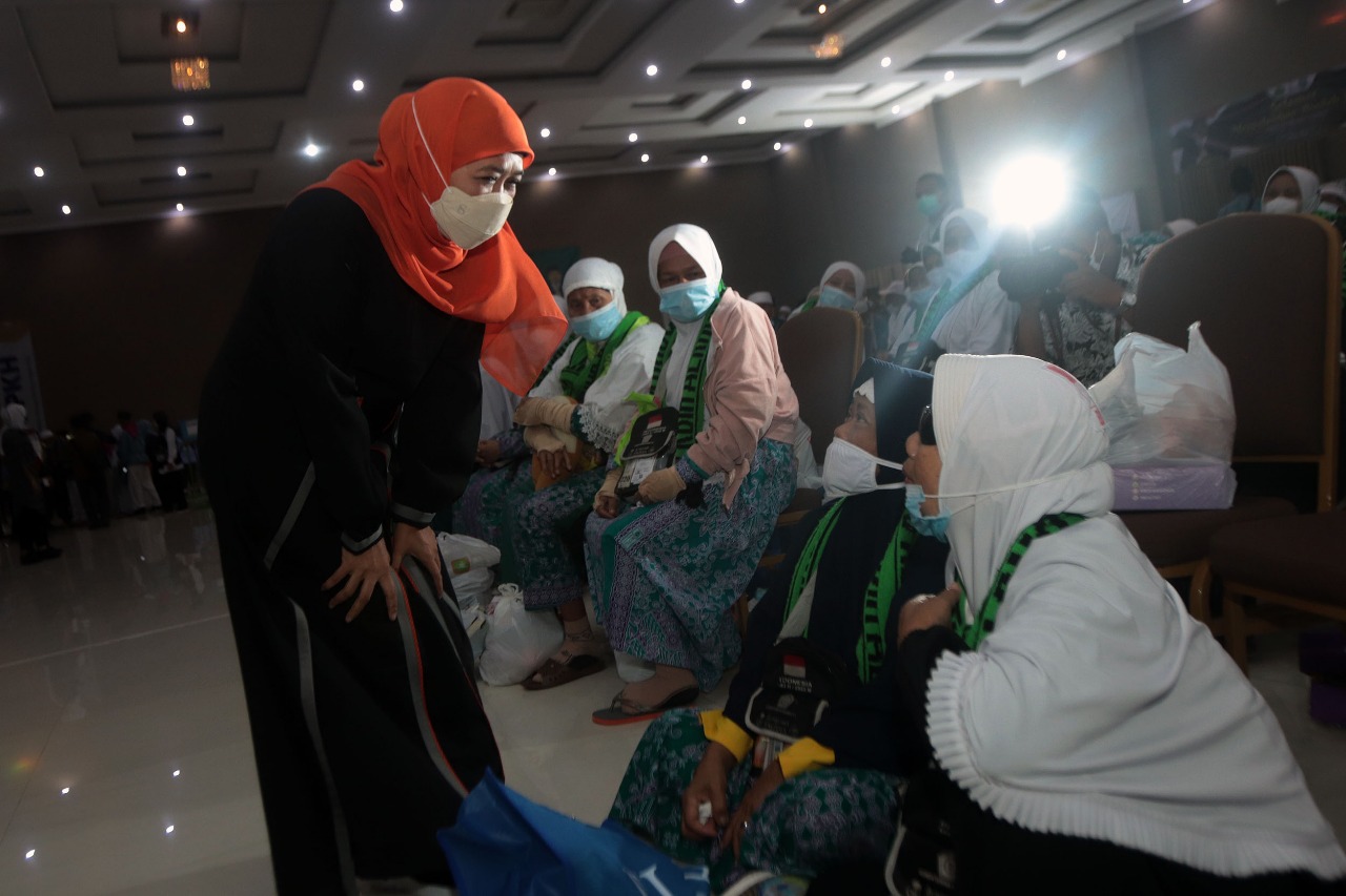Gubemur Jawa timur Khofifah lndar Parawansa secara langsung menyambut kedatangan para Jemaah haji kloter pertama di Asrama Haji Sukolilo, Surabaya. Kehadiran Khofifah memantau jalannya skrining kesehatan sekaligus swab antigen bagi semua jemaah haji. Begitu tiba di bandara, jemaah haji diarahkan ke Asrama Haji Sukolilo, Surabaya, untuk dilakukan skrining kesehatan sekaligus swab antigen. Kemudian pemeriksaan suhu tubuh dan tes usap antigen. Khusus yang hasil tes antigennya positif atau memiliki gejala, dilakukan swab PCR. “Bagi yang suhu badannya di atas 37,5 derajat Celsius atau memlliki gejala batuk, pilek, pusing akan dilakukan PCR,” kata Gubernur Khofifah.