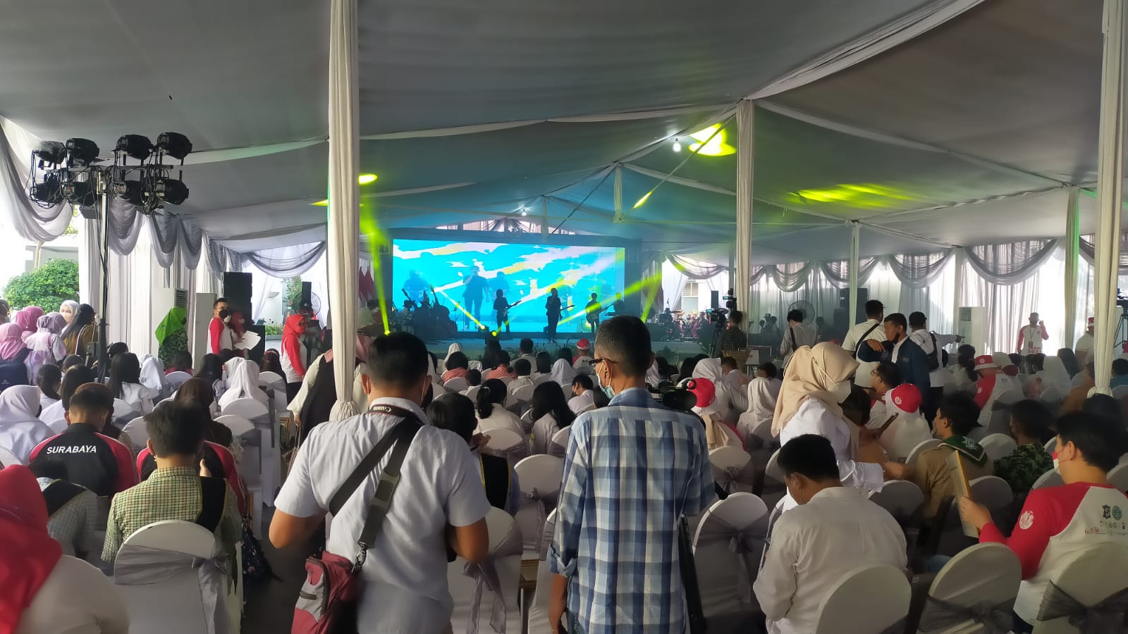 SURABAYAPAGI.COM, Surabaya - Ribuan pelajar Surabaya meramaikan rangkaian Hari Anak Nasional (HAN) Tahun 2022 bertema "Anak Terlindungi, Indonesia Maju" di Balai Pemuda Surabaya, Rabu (27/7).