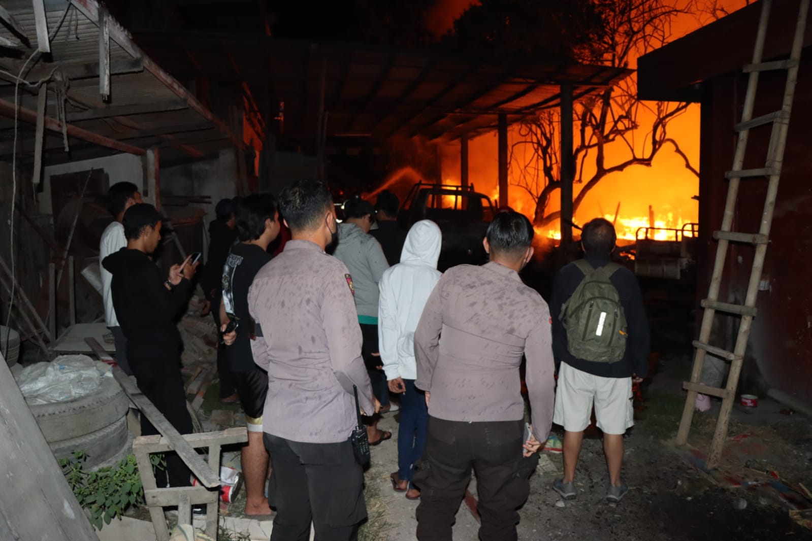 "Melihat kobaran api, kemudian saksi menghubungi petugas Polsek Sukorejo dan Pemadam kebakaran dan saksi menghubungi Yenny Natalia korban (pemilik Ruko) karena saat kejadian korban bersama keluarganya berada di rumah Jl. Durian Kel.Tlumpu Kec Sukorejo Kota Blitar. Sekitar jam 01.20 Wib korban Yenny Natalia tiba di TKP rukonya yg terbakar, dan saat itu api masih menyala besar membakar tumpukan gudang kayu jati, sekira satu jam api berhasil dipadamkan oleh petugas PMK Kota Blitar dibantu oleh Petugas Polsek/Koramil Sukorejo." Tambah perwira polisi yang hobi sepak bola ini.